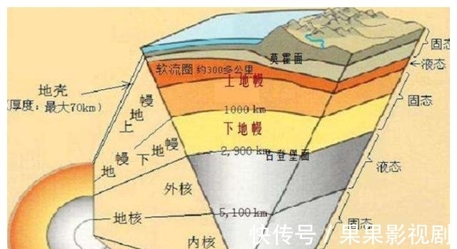 地幔的下面是地核,地核的平均厚度约为3400公里。目前,
